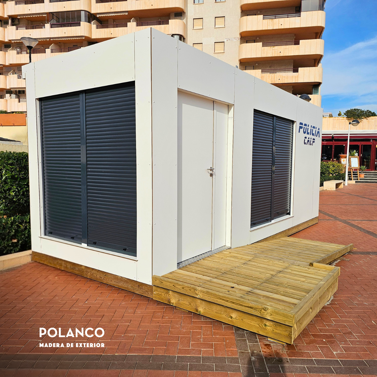 La Policía Local de Calp (Alicante) cuenta ya con una nueva oficina modular prefabricada, diseñada y fabricada por Polanco Madera para ofrecer un espacio funcional, resistente y perfectamente integrado en una de las zonas más emblemáticas del municipio: la primera línea de playa.